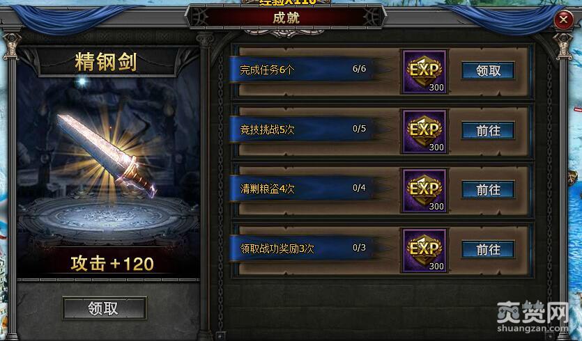 成就的第二件装备奖励是精钢剑。要想获得这件装备,你必须满足以下4大成就条件才能够领取。它们分别是:
