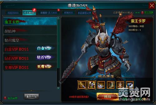 个人BOSS顾名思义,就是指只属于玩家一个人的BOSS,只有玩家自己才能挑战它,肆虐它。每个玩家都拥有单挑强大BOSS的机会,玩家需点击游戏界面右上角“激战BOSS”进入“个人BOSS”消耗相应的混沌通行令,即可进行挑战。