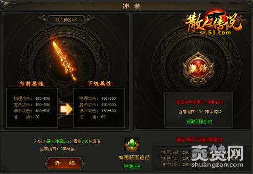 小编目前已经激活了散人神器,虽说只达到了1级,看到当前属性还是有些鼓舞。物理攻击+ 400-500、魔法攻击+ 400-500、道术攻击+400-500、准确+30,已经算是不错了。只不过继续看到LV2的话你又会产生新的想法,物理攻击+480-600、魔法攻击 +480-600、道术攻击+480-600、准确+60。如何才能达到更加牛逼的属性值呢?51《散人传说》游戏界面的提示已经说到了:需要200神魂值,然后还可以点击神魂获取途径,来进一步赚取神魂值。