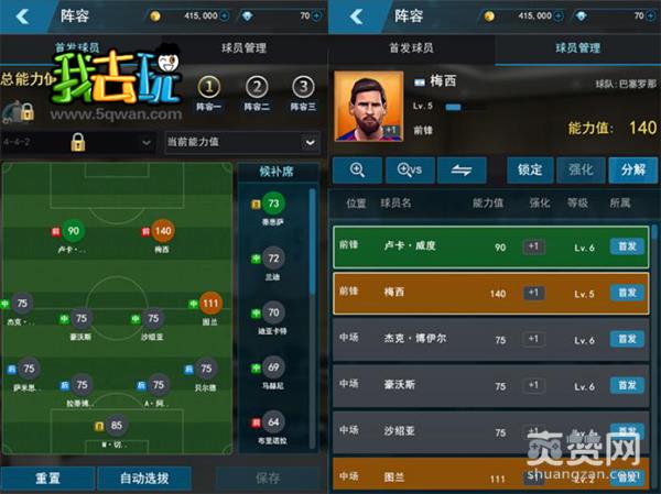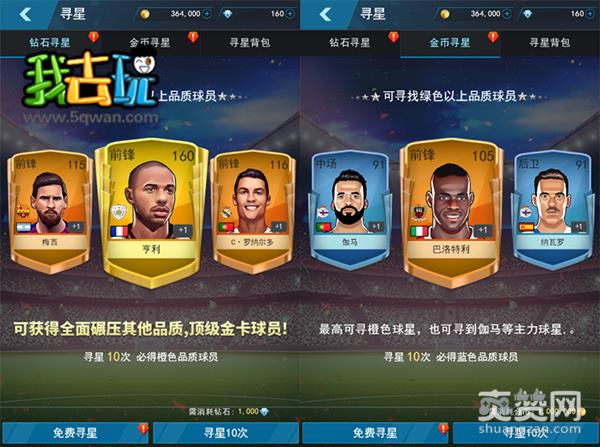 在获得球星之后,玩家可对已签约的球星们进行各种管理。进入球员管理系统中,玩家可查看每位球员的等级和具体的能力值,通过点击相应的按钮还可比较不同球员之间的能力强弱,以此来决定首发的阵容。此外,玩家还可对管理系统中对球员进行锁定、强化、分解等操作,强化球员可提升球员的能力值,分解球员可获得一定数量的球魂,而锁定球员可以避免明星球员被误操作。