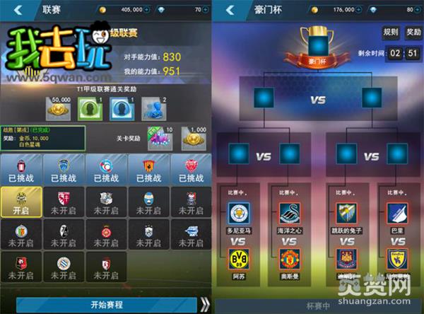 游戏中主要有三种类型的大型比赛,包括T1甲级联赛、杯赛和挑战赛。参与这些专业赛事,玩家可以挑战足球界中的新旧对手。在这些赛事中,甲级联赛是关卡制的,玩家将会与各种类型明星球队进行比赛,而且随着赛程的推进,比赛的难度也会逐渐增加。玩家挑战甲级联赛可以获得大量的金币和星魂奖励。杯赛是豪门杯赛的简称,在豪门杯赛中,将有8支队伍参与竞争冠军的战斗。而挑战赛则是一对一的比赛,获胜者可得到大量的荣誉。