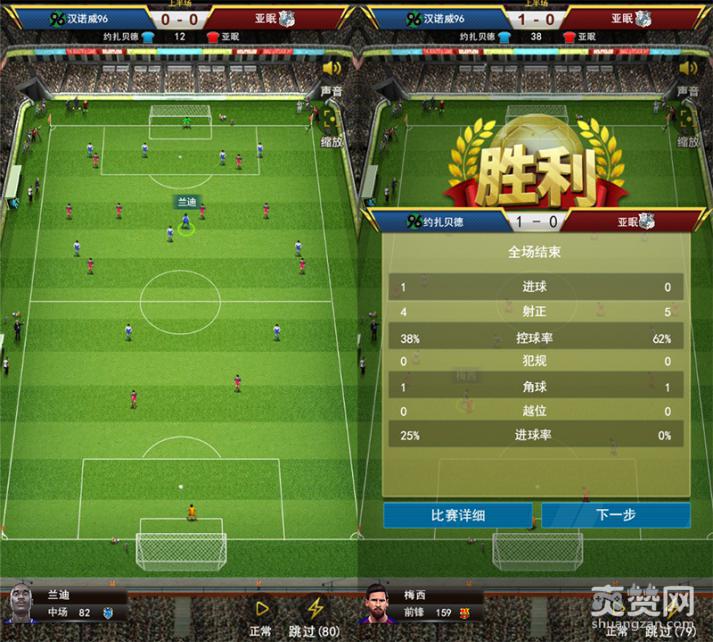 真实的激烈对战是游戏的一大亮点。玩家可以在游戏中观看自家球队的每场比赛。在比赛进行时,每位球员都在发挥自己的能力进行有规律的移动,玩家可通过画面欣赏每位球员的精彩表现,享受竞技的乐趣。如果玩家对默认的比赛画面觉得不满意,也可以点击“缩放”按钮来放大比赛场景,可看到更多比赛的细节。