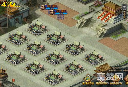 在43u《三国之志2》世界据点中,玩家可以建造集市、农田、民居、太守府等建筑,还可以编组部队、招兵买马哦!想要顺利的进行国战,粮草、铜钱、兵马必不可少,那就赶快去建设建筑、招兵买马吧!