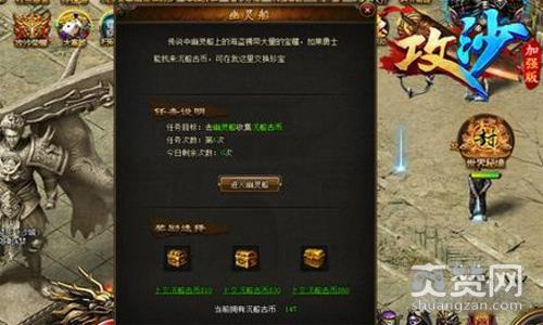 小怪多刷新快意味着什么?意味着这里是一个挂机的好地方,可小怪多刷新快的地方不止幽灵船一个地方,为什么还要来这里?萝卜玩《攻沙》里就有这么一个地方,从沉船宝藏NPC里进入的幽灵船!
