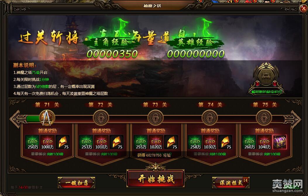 在XY游戏《刺沙》的神魔之塔中,还有一个深渊模式。通过层数为5的倍数层时,会有一定概率出现深渊。深渊的BOSS比普通BOSS明显要强出很多。今天,XY小编要为玩家朋友们介绍的是XY刺沙神魔之塔深渊模式挑战深渊·祖犸教主详解攻略,一起来看看吧。