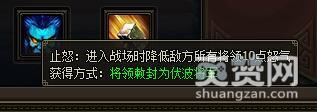 止怒:进入战场时降低敌方所有将领10点怒气 获得方式:将领敕封为伏波将军