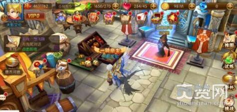 界面分布着系统,包括商店、抽卡、活动、试炼、挑战、公会、熔炉、圣器、队伍、背包、装饰等等。随着自己的等级提升之后将逐步开启这些功能,从无到有,从菜鸟到大神,走上人生巅峰不是梦!左上角的人物头像将会弹出角色界面,你还能够查看自己的信息,包括角色姓名、战力、等级、VIP等级、经验值等等。