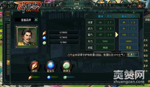 新版本之后,两名武将都有进阶到红将的机会,他们的技能就是恩泽,一个看上去平平无奇但是作用非凡的技能,可以使己方全体获得守护和恢复2回合,自身恢复50士气。这个技能很明显是辅助的技能,但是连续2个回合的全体回复和守护状态,足以打乱对手的布置,在刷图时也有奇效。