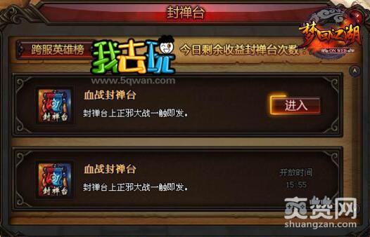 封禅台是一个不可思议,这里每隔一段时间便会自动开启一次。开启之时,只要各位大侠便可以达到相应的等级,便可进入其中参战。每次活动开始,都只能进去二十人,系统会根据进入人数和个人技能削减,进行分配,双方各自都分配好之后,大战便就此展开。
