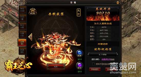9cb《霸王之心》中最抢眼的内容非坐骑莫属了,九种外观各异的浮空法阵高高盘旋在空中,每经过的一寸土地都会留下灵魂的碎屑。坐骑化形系统让玩家可以更加自由的选择自己喜爱的坐骑外观,享受万众倾羡的目光!9cb《霸王之心》现于9cb酷宝游戏平台火爆开服中!