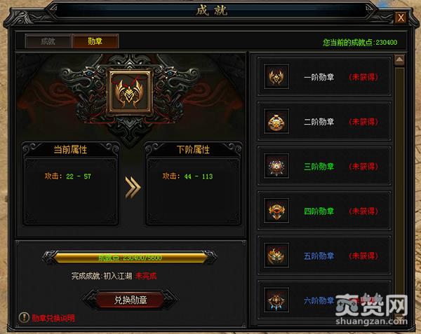 当玩家完成初入江湖里的所有成就时便可兑换所对应的勋章,成就完成的越多兑换的勋章等级越高,玩家获得属性加成也越高。