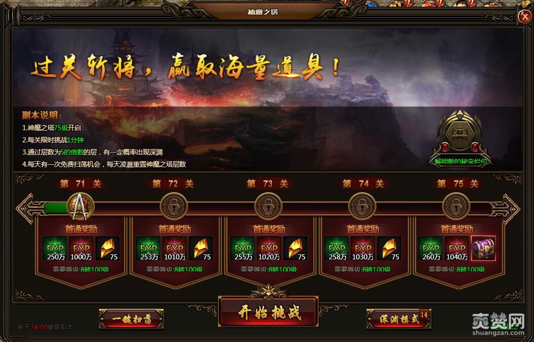 在XY游戏《刺沙》的神魔之塔中,还有一个深渊模式。通过层数为5的倍数层时,会有一定概率出现深渊。深渊的BOSS比普通BOSS明显要强出很多。今天,XY小编要为玩家朋友们介绍的是XY刺沙神魔之塔深渊模式挑战深渊·赤月魔神详解攻略,一起来看看吧。