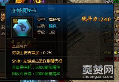 深渊·赤月魔神进入时需要消耗神魔深渊挑战书1本。挑战书可以在神魔秘境中刷。掉落的宝物分别是(并不是一定掉,有些宝物是含概率掉落的):穿刺·魔秘宝(精良)、秘宝精华(中)、BOSS精华(中)、邪月战盔(4转)、邪月战链(4转)、邪月战带(4转)。其中最极品的自然属于穿刺·魔秘宝了。作为品质精良的魔秘宝,它能在PK时给玩家带来对战士伤害增加0.2%的效果。如果打出实属不易,玩家多多珍惜。