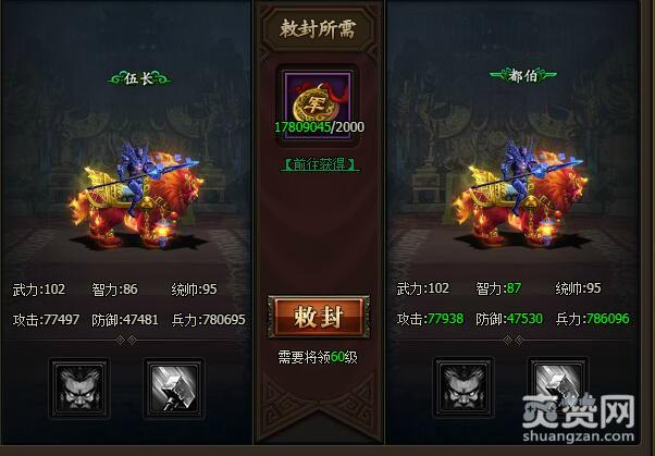 从伍长到都伯 敕封所需军功2000,需要将领60级