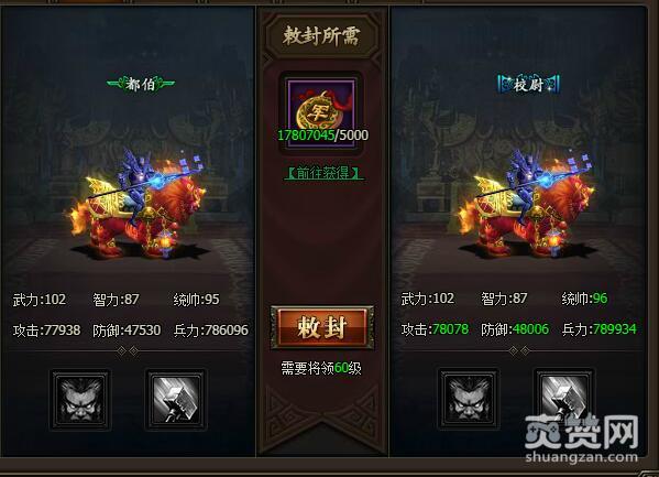 从都伯到校尉 敕封所需军功5000,需要将领60级