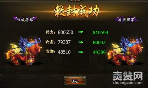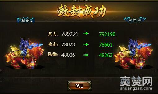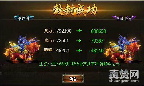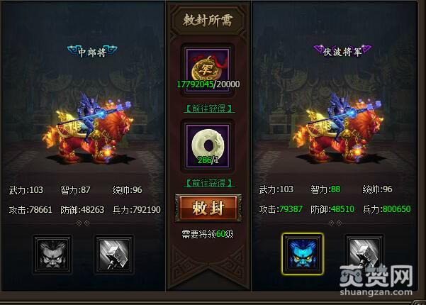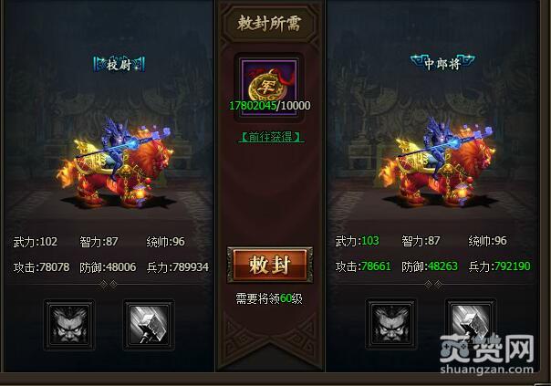 从校尉到中郎将 敕封所需军功10000,需要将领60级