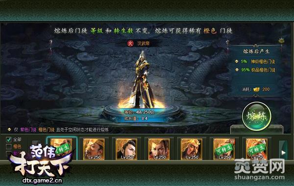 门徒熔炼中,玩家可以花费少量元宝对门徒的品质、成长进行重构,更有几率将橙色门徒变身成为神级门徒,实力成倍提高。