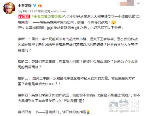 随后,王者荣耀的策划在微博上也暗示新的玩法即将上线。