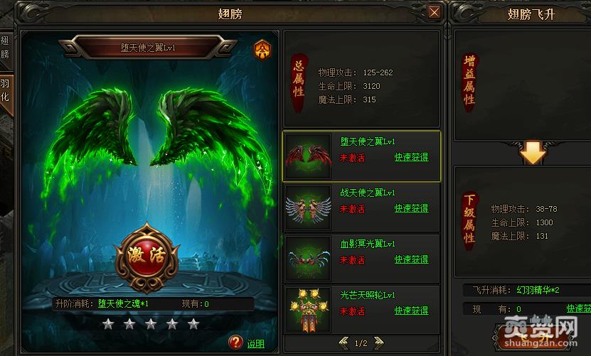 52gg《散人传说》翅膀系统在等级40级的时候开放。40级开启翅膀系统,升级翅膀可获得绚丽外形以及大量属性加成,更有对boss特殊攻击加成,让您打boss 更加省时省力!翅膀可在翅膀面板进行展示。