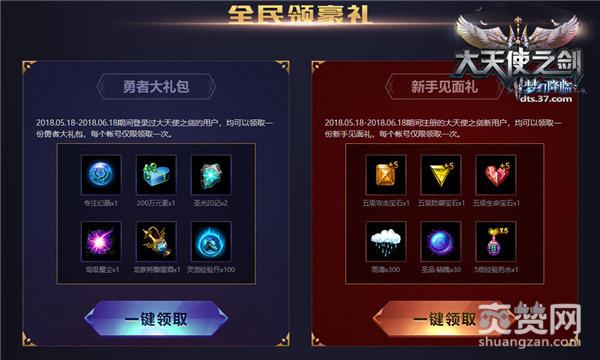 目前37《大天使之剑》四周年庆将提前上线两大活动:“四周年回馈”和“狂欢兑豪礼”,“四周年回馈”准备了两大礼包送给玩家,一个是“勇者大礼包”,另一个是“新手见面礼”,在2018.05.18-2018.06.18期间登录过37《大天使之剑》的用户,均可以领取一份“勇者大礼包”,如果是在2018.05.18-2018.06.18期间注册游戏的新用户,则可以领取一份“新手见面礼”。