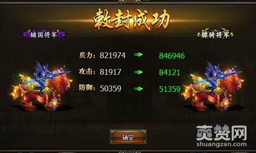 从辅国将军到骠骑将军 敕封所需军功80000,美玉10个,需要将领60级