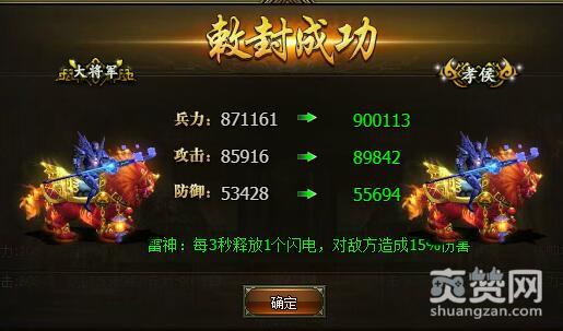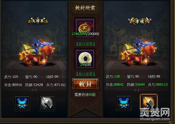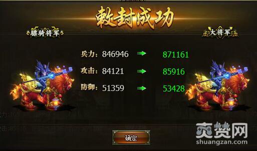 从大将军到孝侯 敕封所需军功200000,美玉30个,需要将领60级