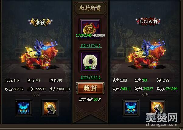 从孝侯到巨门天将 敕封所需军功400000,美玉50个,需要将领60级