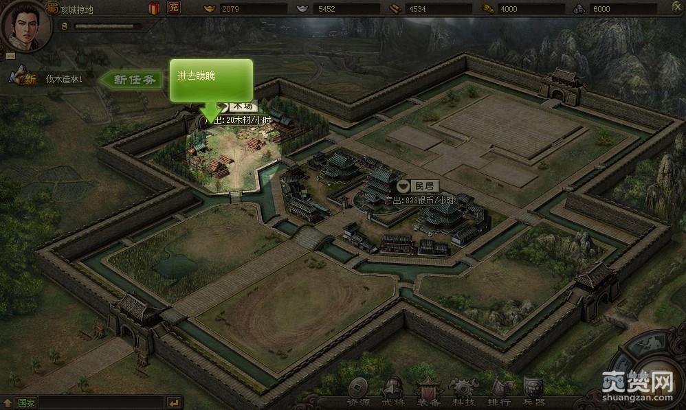建立角色之后还会有一个建筑位赠送。然后根据主线任务的完成会相继出现酒楼,民居三,民居四,银库,布庄一。到达9级之后就可以开放主城,里面会有“主城和木场”。