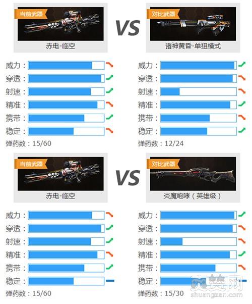 赤电-临空的本质为狙击枪,所以咱们还要来看看它与其他同类型武器的属性对比情况。不过参数对比只是数据,具体还是要考验小伙伴们的实战操作哦!更多攻略和视频登录《4399生死狙击》官方网站和群组查看分享哦!
