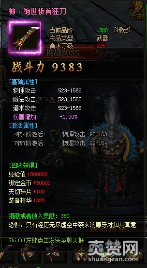 另外我们要知道,获取的装备,阶位越高,属性就越高级,超高级装备在地上有特效显示。每个装备有1-7星,星级越高属性越好。达到不同的转生等级可以激活装备对应的激活属性。