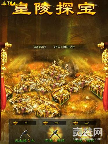 在43u《三国之志2》皇陵探宝中,活动期间玩家每天可以免费挖宝3次,也可以使用元宝来多次挖宝,消耗200元宝可以10连挖,消耗1000元宝可以50连挖。这个元宝花的绝对值得哈!