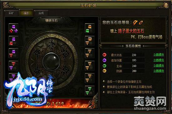 在51《九阴绝学》中装备可以为角色提供高额的战斗力加成,因此把装备变得更强就成为玩家最重要的成长方式之一。宝石镶嵌界面分为左右两栏,左侧只能镶嵌紫色和红色宝石,右侧只能镶嵌黄色和绿色的宝石。紫色宝石能增加伤害值且无视防御,红色会增加攻击力,但受对方防御值影响。显而易见,紫色宝石要优于红色宝石,黄色宝石可增加防御力。而绿色则增加生命值,随着敌人攻击次数的增加,防御力属性的收益会高于生命值属性的收益,所以黄色宝石又比绿色宝石实用些。而绿色宝石是最好不用的,比较睿智的办法就是把它卖了。在随身商店处可以出售一些不用的道具,一颗1级的绿宝石就值一万绑定铜钱,积少成多也是一笔很可观的财富。用这些钱来合成其他宝石,是很划算的。