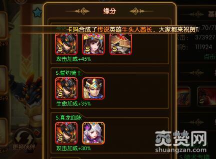 缘分的查看很简单,只要在队伍界面,然后选择你上阵的英雄就可以直接看到这个英雄的缘分了,每个英雄都会有好几条缘分,品质越高的英雄,它的缘分属性也越厉害。比如S神话级的龙骑士,它有四个缘分,分别是神话之力I、S誓约骑士、S骑术专精、S真龙血脉。它们能提供的属性加成也是非常恐怖的,比如神话之力I可以为我们提供45%的攻击力加成,S誓约骑士可以提供35%的生命加成,S真龙血脉可以提供30%的攻击加成,S骑术专精可以提供40%的生命加成,大家看到这里是不是很震惊!都是百分比的属性加成哦!可以想想当我们把这些缘分都激活的时候,我们可以获得多么强大的实力提升!