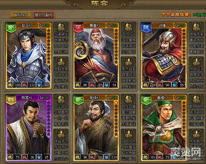 进行副本战斗时,武将会按照阵容中的顺序依次攻击,合理配置武将位置会是胜负的关键。不论是首发、替补还是副将,只要上阵的武将,就能激活缘分,武将满足缘分后可以获得强大的属性加成。更多策略玩法,亲自到游戏中体验吧!