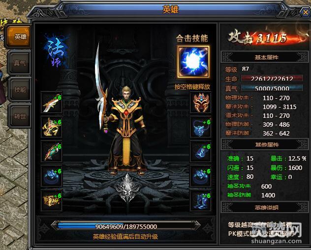 2.英雄会随着玩家打怪跟使用英雄经验丹来一并提升等级和转生。