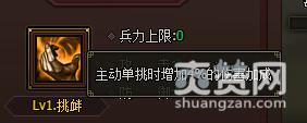 刚激活的甄洛,虽然兵力上限、攻击、防御都为0。但是她却拥有一项不错的技能。它便是挑衅,不过目前只有1级。1级挑衅效果是:主动单挑时增加4%的伤害加成。也就是说,你如果手动点单挑或是小秘书自动进行单挑的时候,会增加4%的伤害加成效果。在单打独斗中,你会更具有优势。