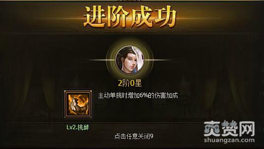 1级挑衅升2级挑衅时,2级挑衅规定:主动单挑时增加6%(与1级挑衅相比提升了2%)的伤害加成。
