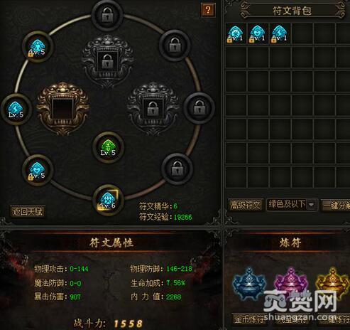 若想获得符文,其获得方式也比较简单,就是炼符。不过,炼符也分为金币炼符和元宝炼符。金币炼符可以每天炼符20次,每次炼符消耗50万金币,随机获得白色、绿色、蓝色品质的符文。元宝炼符每次消耗100元宝,随机获得绿色、蓝色、紫色的符文。