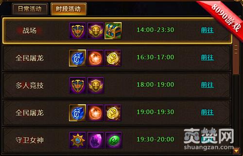 刚刚说的要不就是群战要不就是跟游戏中的boss对打,其实除此之外在8090龙之领主中还有一个真人对抗的玩法哦,他就是战场了,每天14:00-23:30这个时间段就会开启,大家一天会有两次的参加机会哦,不仅仅可以获得大量的声望以及荣誉勋章还可以获得战场宝箱哦!