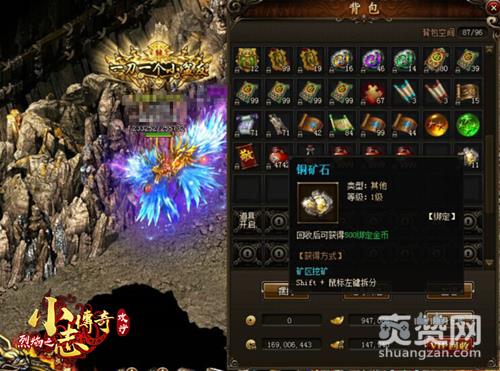 玩家进入矿区后,点击里面的矿石墙体,角色就会自动进入挖矿操作状态。玩家所挖到的9377小志传奇矿石,会存放在背包里,而当背包空间不足时,将无法继续进行挖矿。