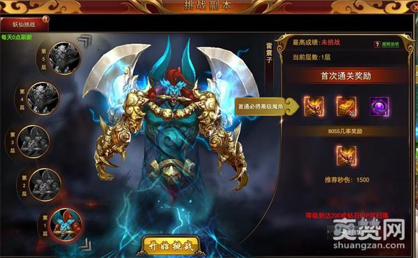 挑战副本一秒追梦获取真贵材料抽取绝世神宠,玩家每日可以挑战一层或快速通关每当挑战妖仙成功时都可以获得一个高级召唤魔角以及大量礼金和妖兽升星丹,妖兽挑战难度非常高,只有装备属性和操作同时具备时才方可击杀BOSS赢得最强萌宠,参加挑战副本带上你的Q萌宠物一起逍遥江湖!