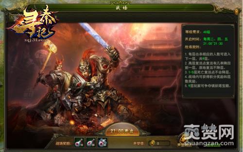 在51《寻秦记》中,只有等级达到40级的勇士才有资格进入九层妖塔降妖除魔。在每层妖塔击杀一定数量的人数可以进入下一层妖塔,角色在五层以上的妖塔死亡,有几率掉落一层,而使用复活药复活则不会掉楼层数。每击杀一个人获得10点战场积分,击杀怪物获得5点积分,每层通关也将获得战场积分奖励。高层地图排名第一的玩家可获得镇妖帝王BUFF和排名奖励。镇妖帝王BUFF时效24小时,下次活动重新获取。封魔帝王BUFF帮助玩家增加附加时效属性。