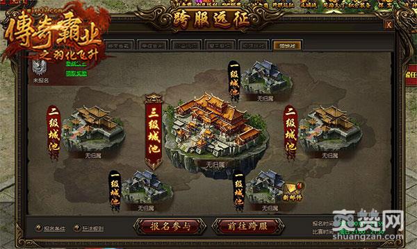 在37《传奇霸业》中,跨服领地战由官方首次开启匹配,每4周为一个循环。每周六0:00至23:59分期间,满足相应条件的公会,会长或副会长可申请报名参加。在领地战中,有一至三级城池数个,所有公会成员可选择任意城池进入,任一公会持续占领某城池一段时间、或活动结束时城池旗帜所属该公会,即该公会占领该城池。