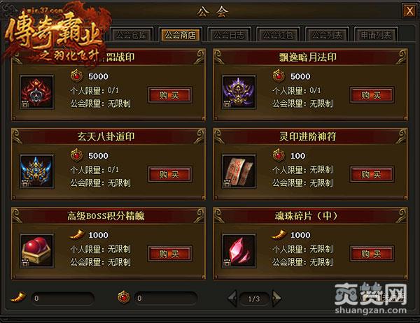 37《传奇霸业》新增公会玩法,包括灵印系统与公会商店,开服天数达到60天,玩家可从公会信息-公会商店标签进入。在灵印系统中,消耗灵印精华,可以提升灵印等级,激活强力的被动技能和华丽的外观效果。另外,每个职业拥有专属的特殊灵印可以进阶,进阶后,将激活强力的职业被动技能效果。灵印升级和进阶消耗的材料,可凭借参与跨服领地战获得的战徽,前往公会商店处兑换获得。