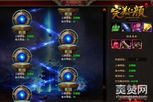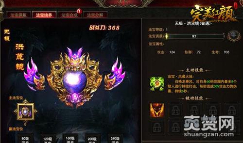 法宝是51《完美红颜》中随神奇的道具,无数玩家为之疯狂。每一个大宗师都有强力法宝相伴,这些法宝或有大范围杀怪之能或有虚空制敌之效,所以强大的法宝很重要。法宝灵台可以获得升级法宝的材料,每一层通关都会大量奖励,每天能免费重置一次,通关的进度会保存在最高值,之后战力提升可以从最高值开始。