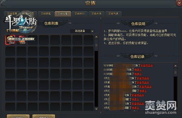 宗族仓库是个特别的资源库,在这里可以捐献神魂石,神魂石可以升级魂力,每次族人参加跨服BOSS结束后都会在宗族仓库内系统给与补给炼品盒,累计宗族贡献可兑换炼品盒对装备进行升品,升品的战力加成可不少哦~是主要的战力加成方式之一,掌握仓库贡献的族员就有掌握先机的权利,一旦跨服结束立即对仓库进行扫荡,兑换次数没有限制,先到先得。