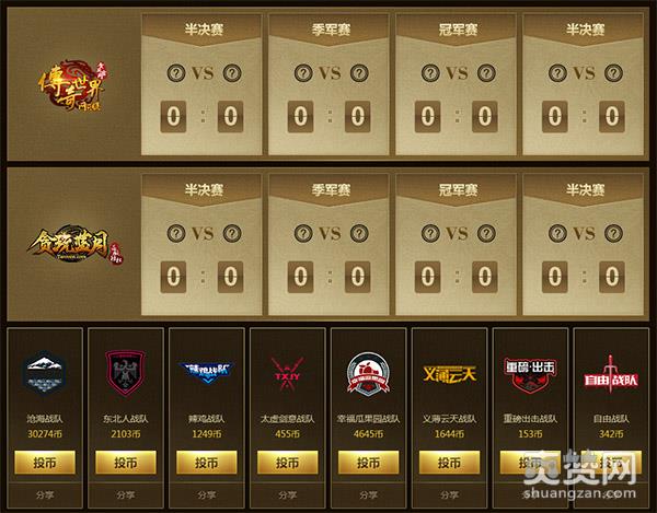 两个游戏,八支队伍。这就是此次盛典贪玩游戏页游为大家准备好的节目。玩家每天签到和充值都能获得战队币,赠送战队币给参加比赛的战队,就能提升这只队伍的人气值,而且同时还能提高赛事的奖池,可以说是一举双得的好事情,赢得冠军战队竞猜就能开启奖励,海量元宝说不定就会被你收入囊中。