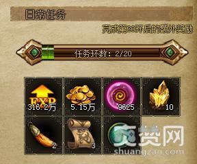 另外,每日20环的日常任务全部完成后,会有额外的任务奖励,奖励物品显示在日常任务面板左上方。