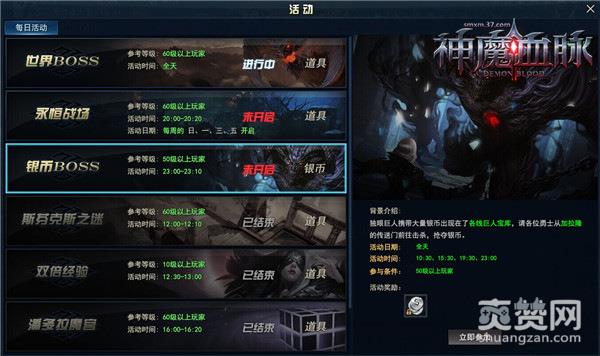 37《神魔血脉》的独眼巨人每天都会携带大量银币出现在各线巨人宝库地图,只要各位勇士通过加拉隆的传送门前往击杀,即可抢夺银币,该活动在:10:30,15:30,19:30,23:00这四个时间开启后,巨人宝库地图所有线路会随即刷出银币BOSS,击败银币BOSS的话,还有几率掉落稀有宝物