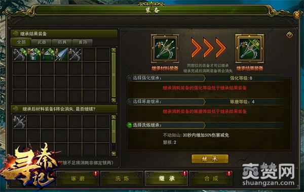装备洗炼是增强装备属性的另一种途径,通过消耗鉴定图纸对装备进行属性及特殊效果附加,洗炼成功后获得的基础属性和特殊效果在穿戴装备时即可生效。当玩家获得更强大的装备时,可以无损将强化、琢磨和洗炼属性转移到新装备上,这就是装备继承,可以避免装备的浪费。